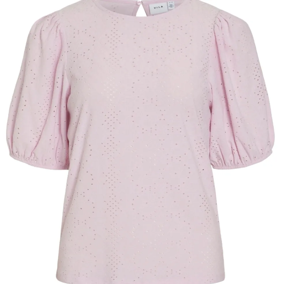 Feminin blondebluse fra Vila. Blusen har de smukkeste detaljer og er ideel både til hverdagsbrug og finere brug. Brug den både med jeans og nederdele alt efter anledningen.