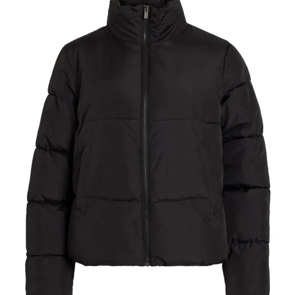 Dejlig varm og kort pufferjakke med høj hals fra Vila. Style den med et par biker boots for et råt og cool look.