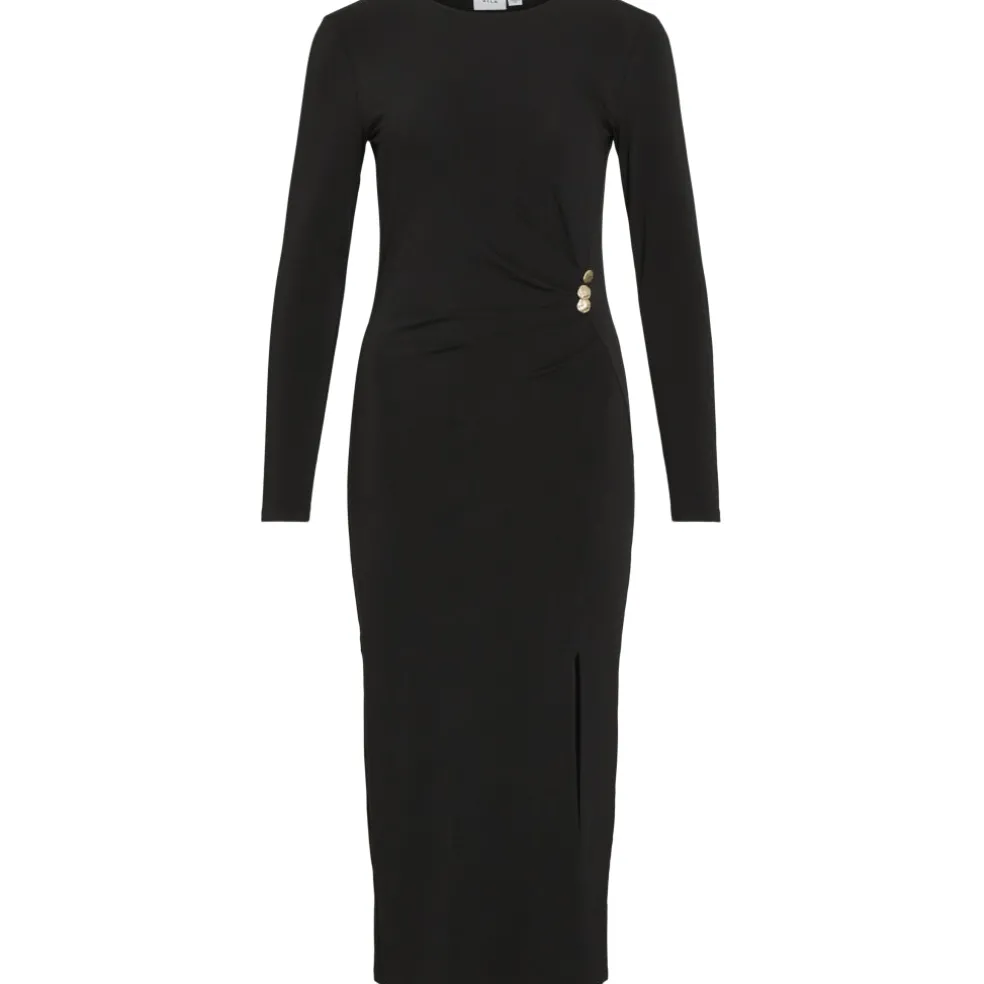 En midi kjole med rund hals og lange, smalle ærmer i en komfortabel regular pasform. Perfekt til efterårssæsonen med knappedetaljer.