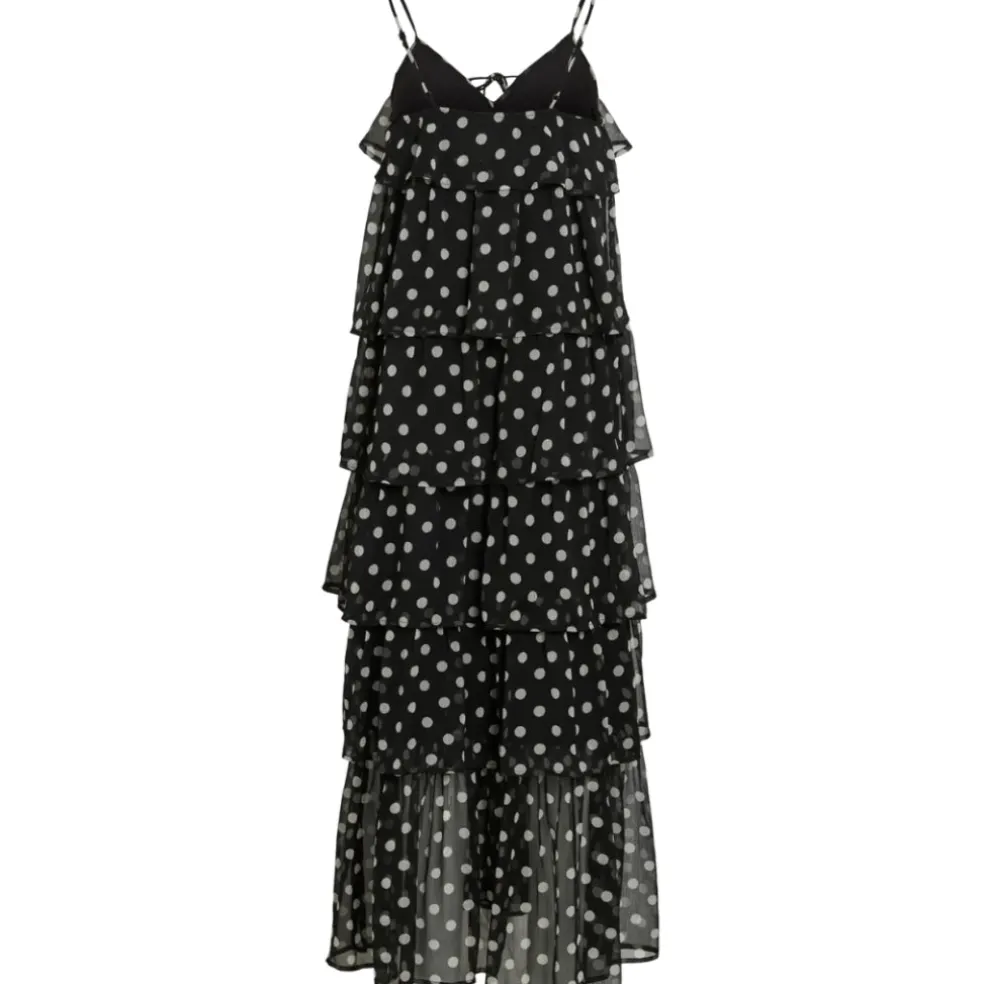 Smukkeste flæsekjole fra Vila. Perfekt til sommerens fester. Style med et par stilletter.