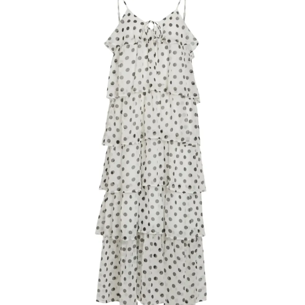 Smukkeste flæsekjole fra Vila. Perfekt til sommerens fester. Style med et par stilletter.