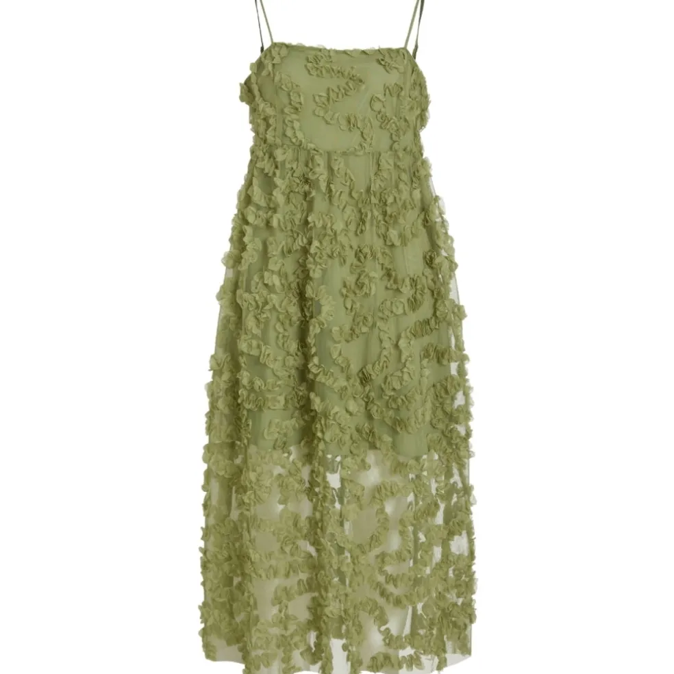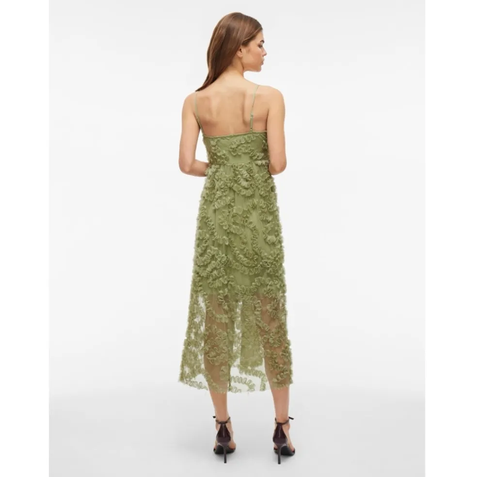 Super elegant og smuk kjole fra Vila med de flotteste detaljer. Kjolen har spaghettistropper, et unikt mønster og en underkjole. Den er ideel til sommerens festlige begivenheder med et par stiletter eller ballerinaer.