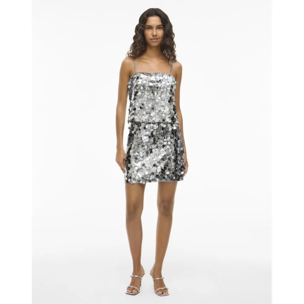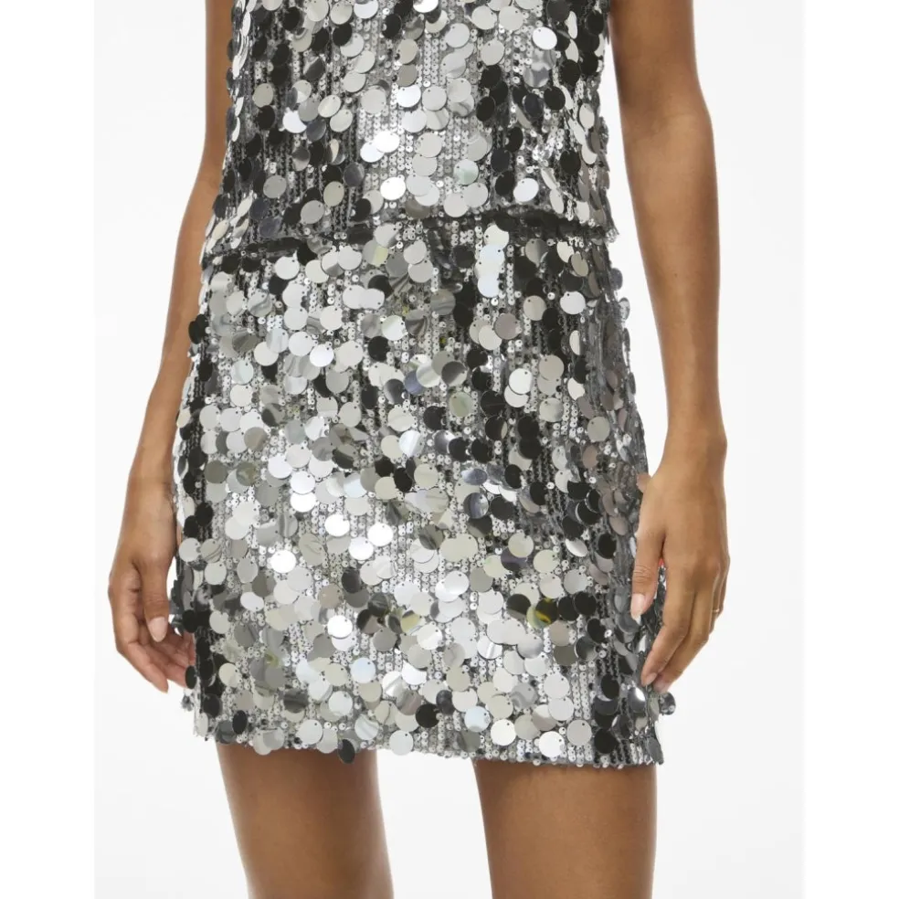 Smuk glitter paillet nederdel fra Vila. Nederdelen er en mini skirt med elastik. Den passer helt perfekt til de kommende festligheder – og kan styles med den matchende top.