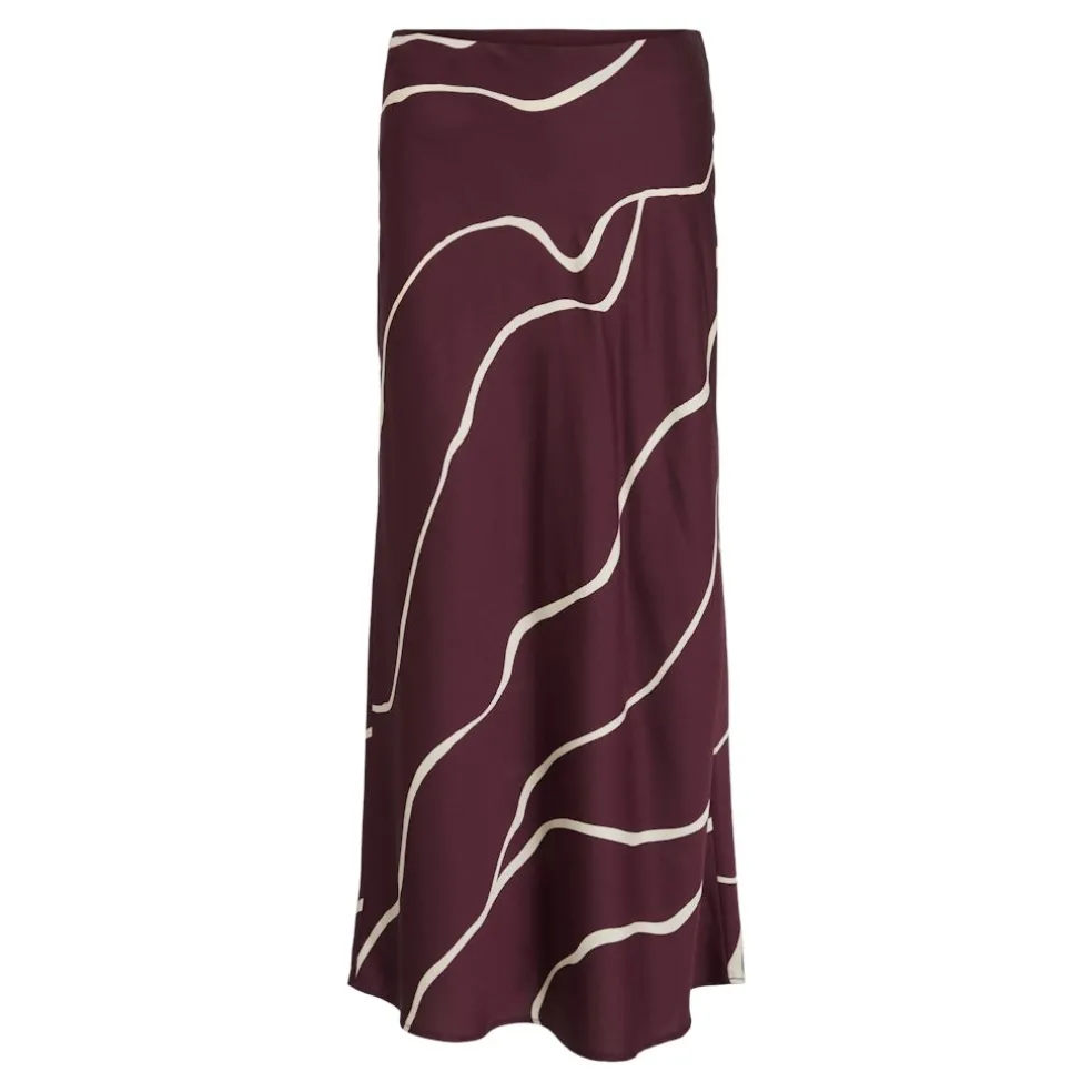 Smuk satinnederdel fra Vila. Super feminin og kan både bruges til toppe og skjorter alt efter looket du ønsker. Ideel til både hverdagsbrug- og finere brug.