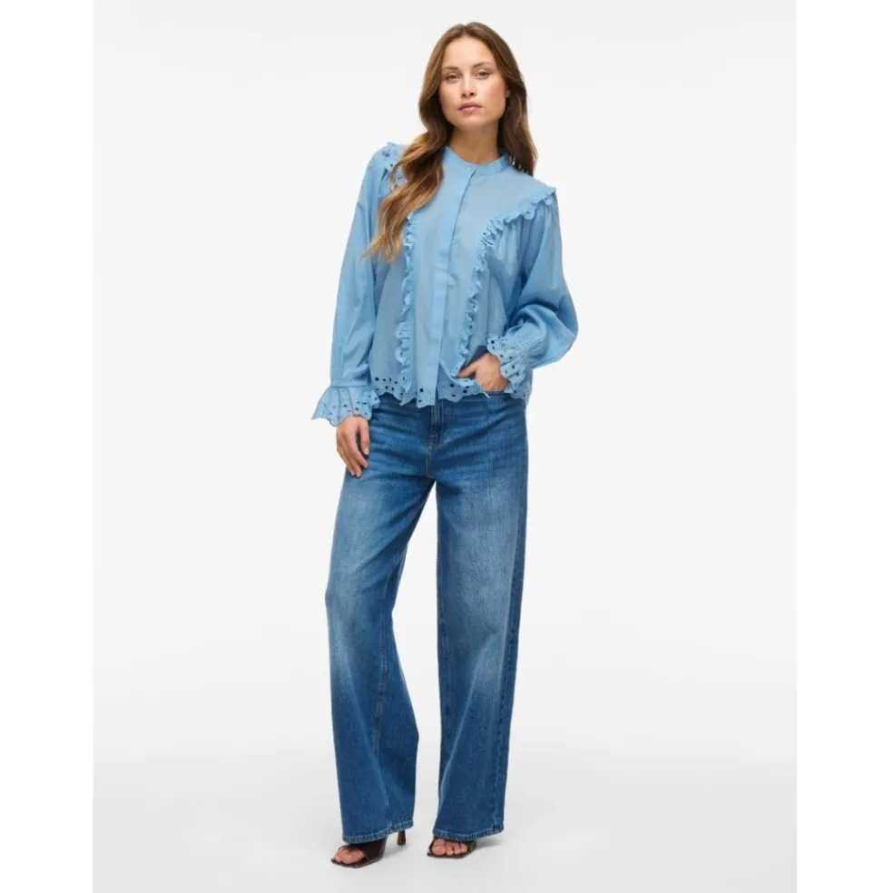 Super smuk skjorte med fine flæsedetaljer fra Vila. Den er vildt feminin og elegant, og ideel til både hverdag og festlige anledninger. Brug den til hverdag med jeans og sneakers, og med en nederdel og stiletter til finere brug.