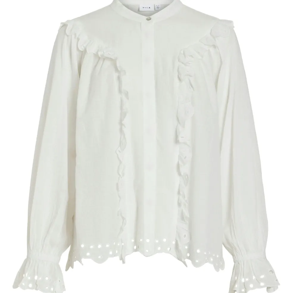 Super smuk skjorte med fine flæsedetaljer fra Vila. Den er vildt feminin og elegant, og ideel til både hverdag og festlige anledninger. Brug den til hverdag med jeans og sneakers, og med en nederdel og stiletter til finere brug.