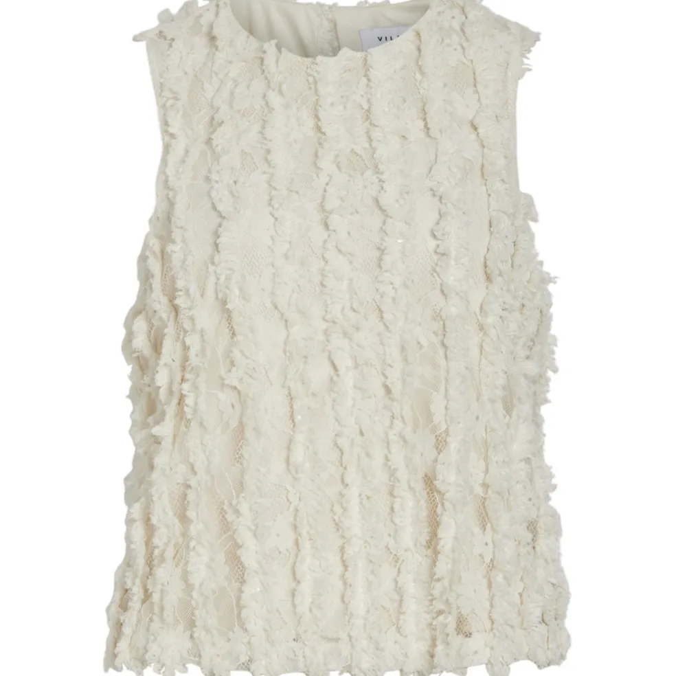 Smart top med blonde og frynser fra Vila. Toppen kan styles med nederdelen fra samme serie.