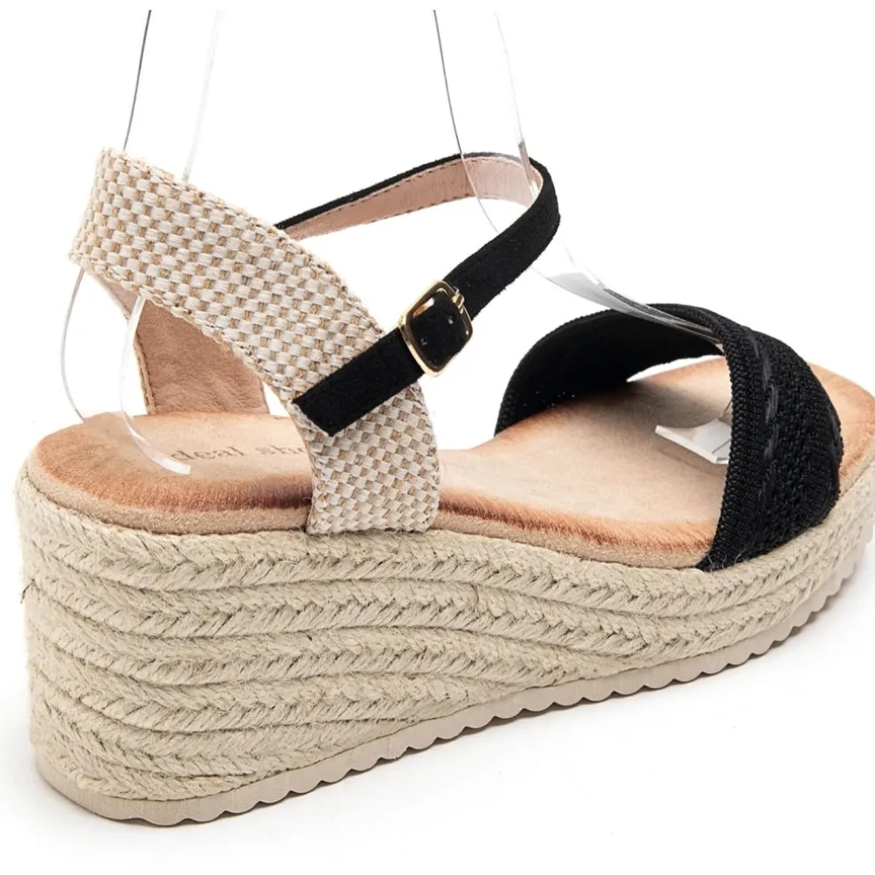 Skønne plateau sandaler med espadrillos bund. Sandalerne har en dejlig blød bund samt spænde, så de kan justeres rundt om anklen.