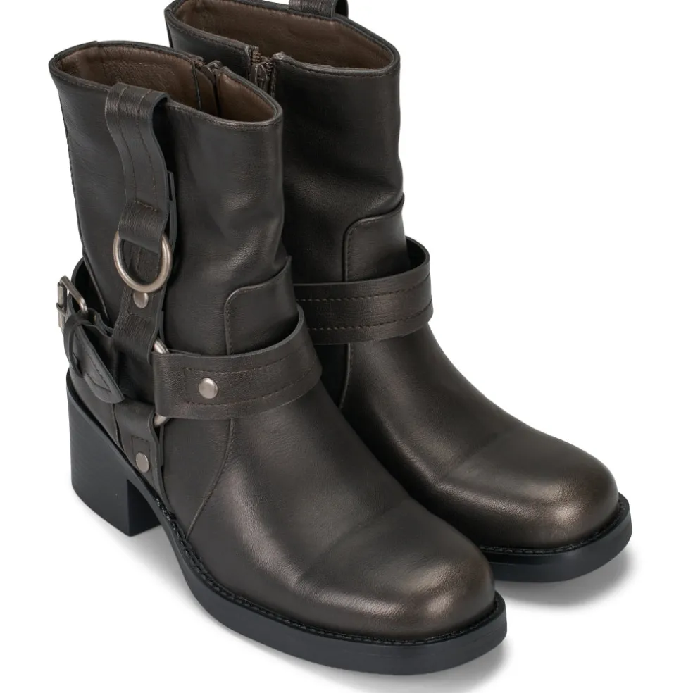 Cool bikerstøvle med flotte detaljer og dejlig blød bund, der sikrer høj komfort hele dagen. Støvlen har et råt og stilrent design med spænder og syninger, der giver ekstra kant. De tilføjer edge til dit outfit uden at gå på kompromis med komforten. Perfekt til både jeans og kjoler.