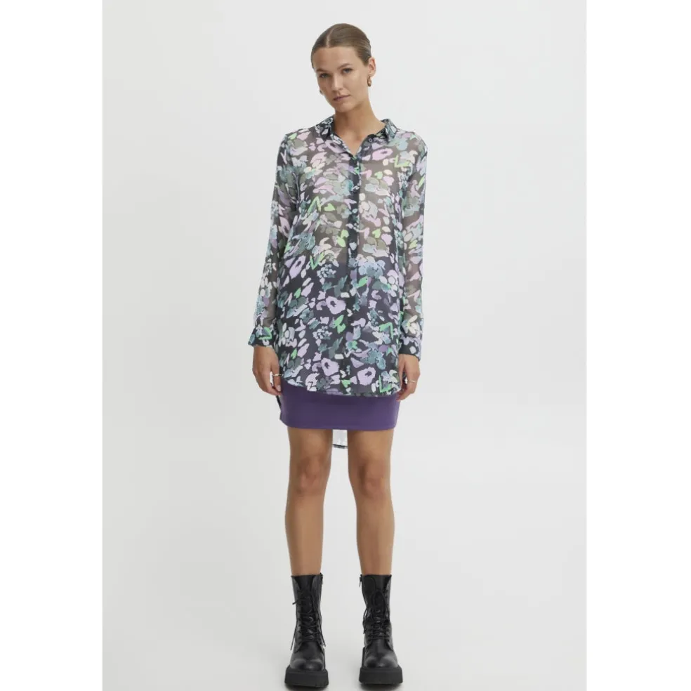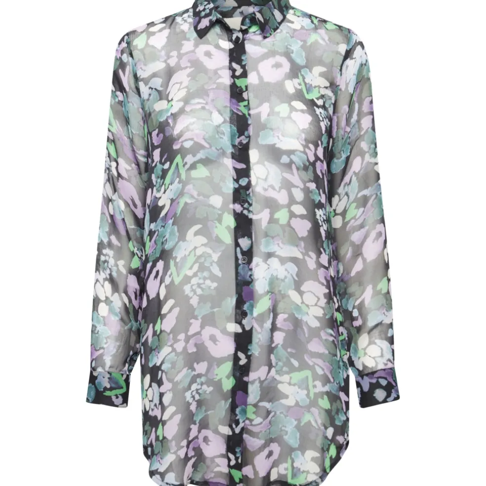 Super lækker skjorte fra ICHI i en gennemsigtig og let kvalitet. Skjorten er lidt længere bagpå og kan styles til et par jeans og støvler.