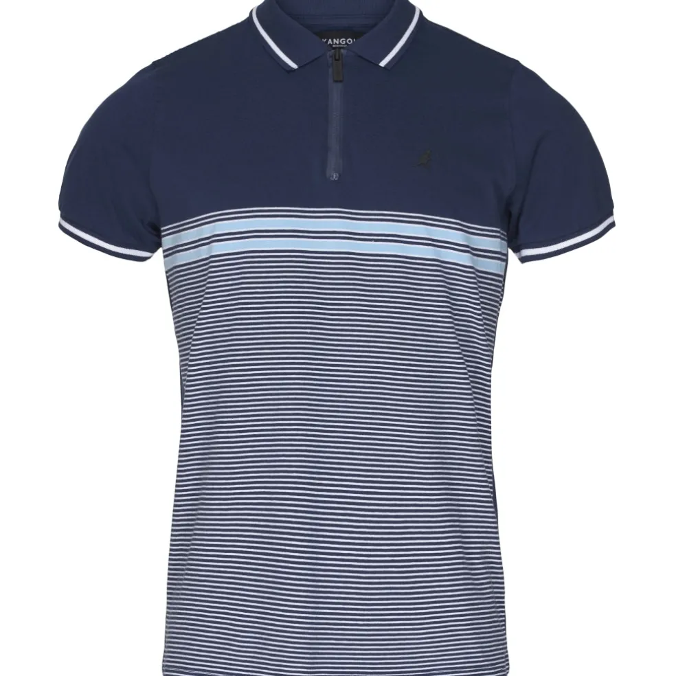 Flot polo fra Kangol med striber og en fin lille krave. Ved halsen er en lille lynlås, så den kan åbnes lidt op.