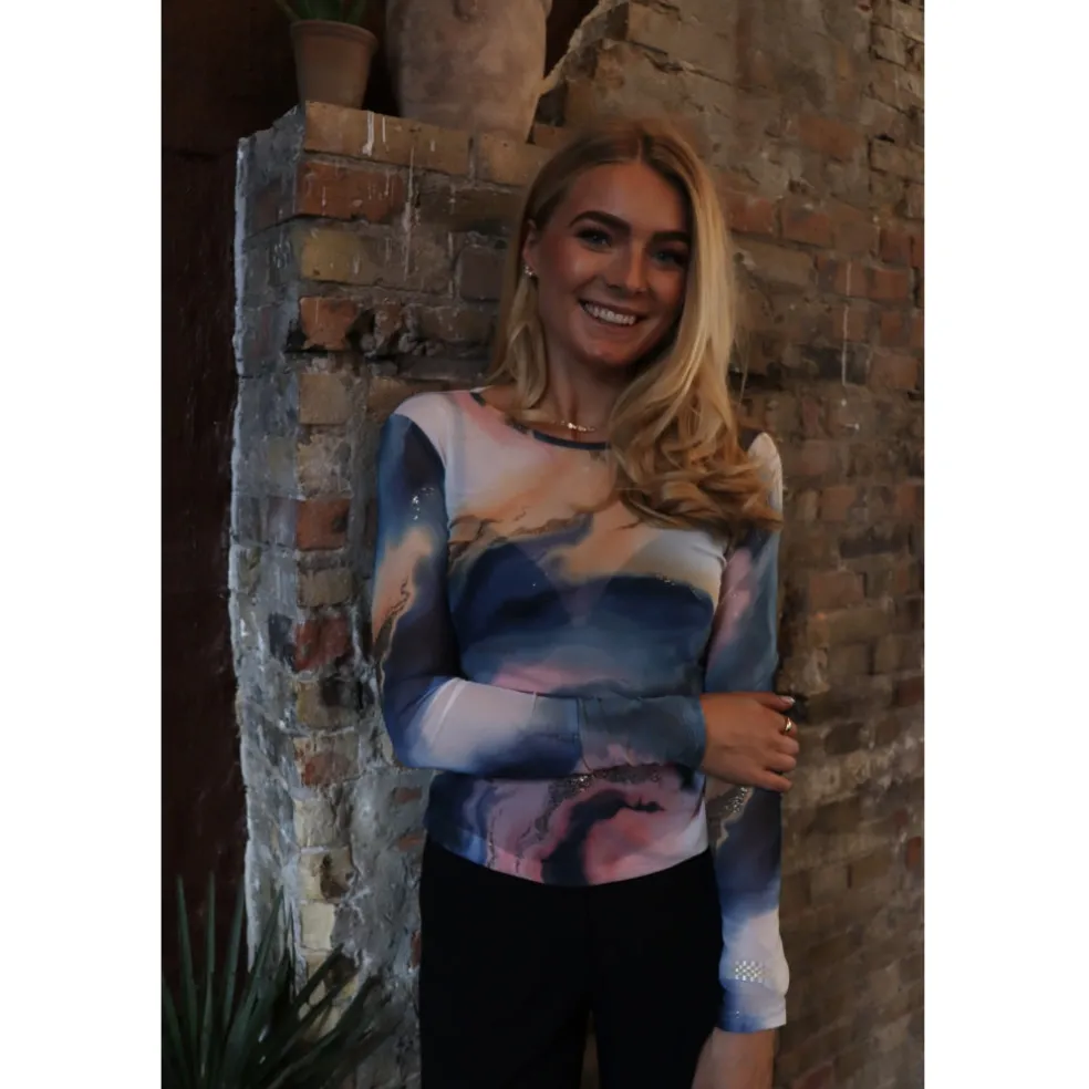Smuk meshbluse fra Liberté med et fint, feminint motiv. Mesh er en trend vi ser super meget til, og denne er ifølge os en uundværlig style i garderoben.