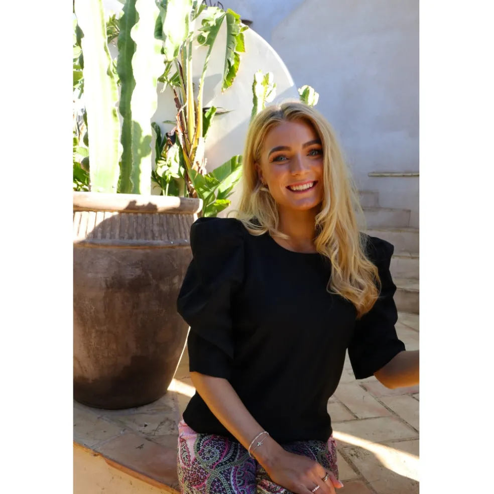 Smuk, enkel og elegant bluse med de smukkeste pufærmer.