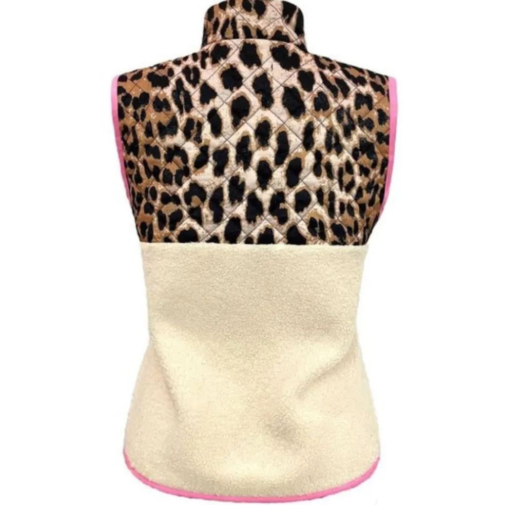 Cool, trendy teddy vest fra Liberté i leoprint. Vesten har seje lyserøde kontrastsyninger, hvilket giver en super fed effekt. Den har lommer og lynlås, og kan bruges med en basis t-shirt eller langærmet under for et komplet lag-på-lag look.