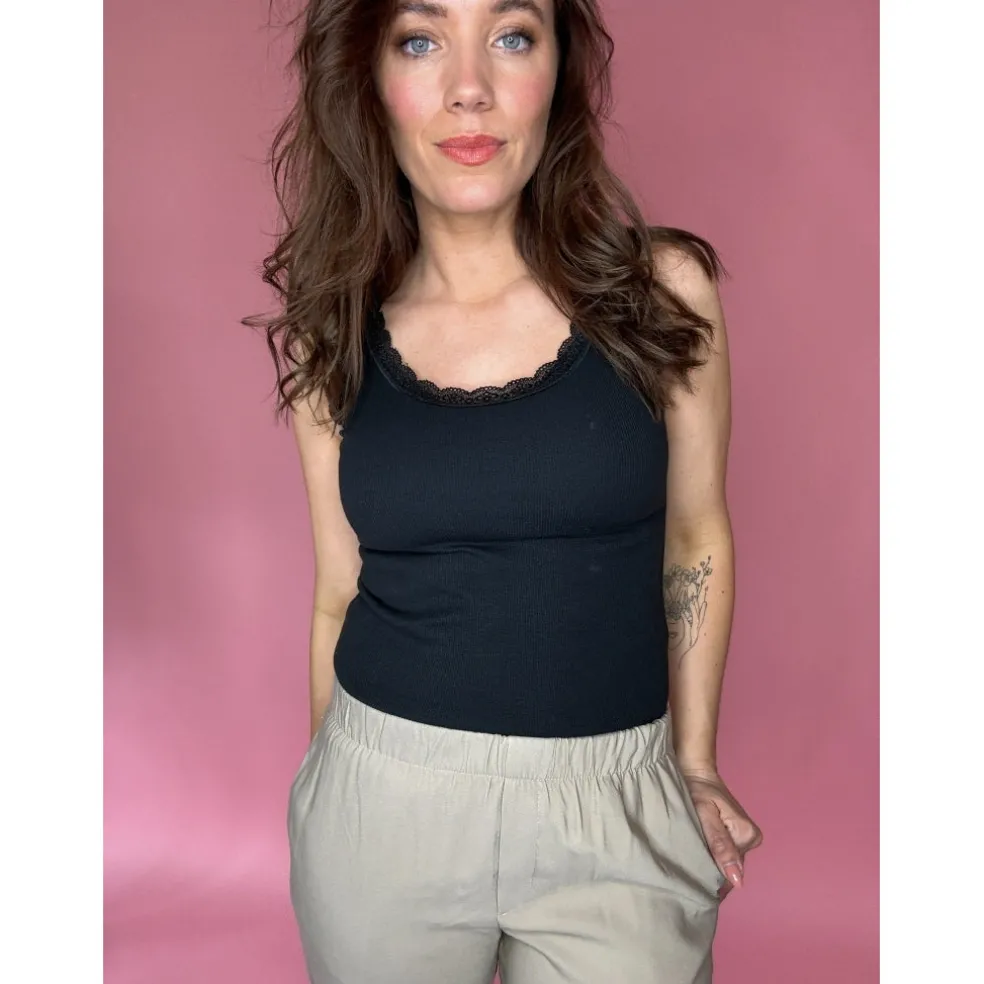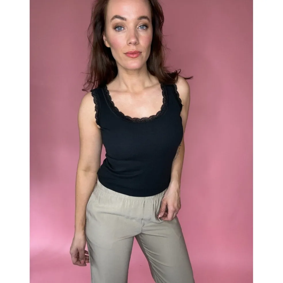 Smuk blondetop som er et musthave til dit basic klædeskab. Den er flot både at style under en trøje, skjorte, blazer eller bare helt for sig selv.