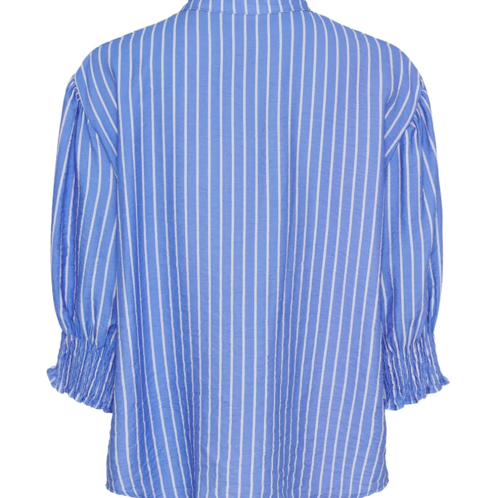 Femin og elegant bluse fra Marta Du Château. Blusen har v-hals, smock ved ærmerne og en enkel flæsedetalje langs halsen. Style den med matchende bukser fra samme serie for et fint sammenhængende look.