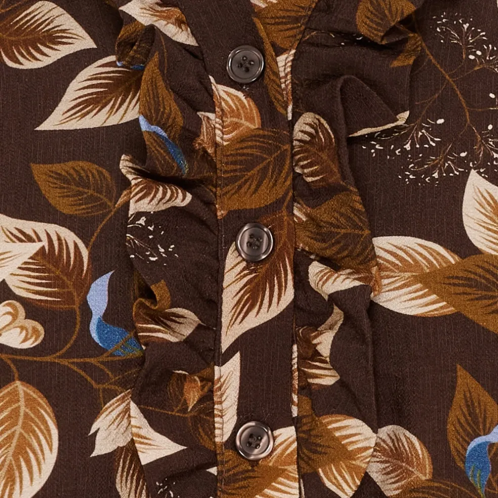 Smuk printet skjorte fra Marta Du Cháteau med V-udskæring og flæse detalje. Skjorten har knapper foran og elastik i ærmerne. Ideel både til hverdagsbrug og finere brug.