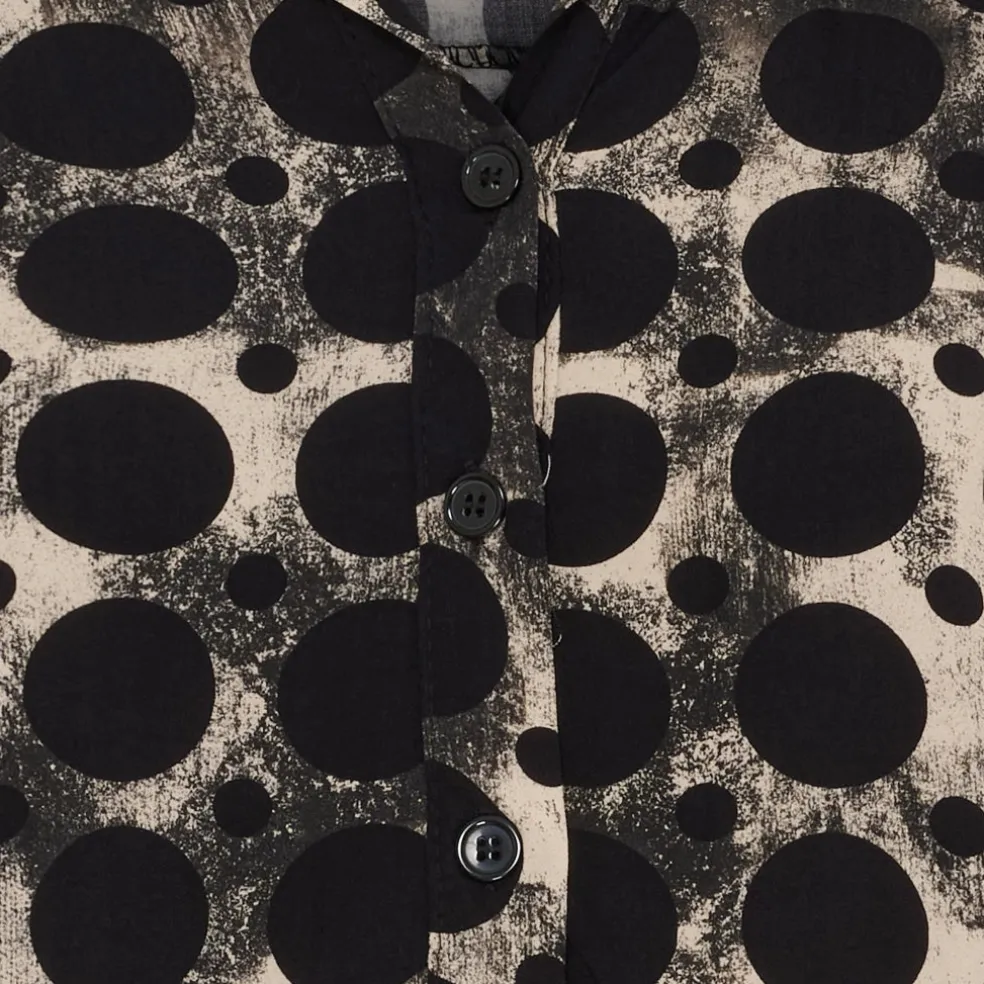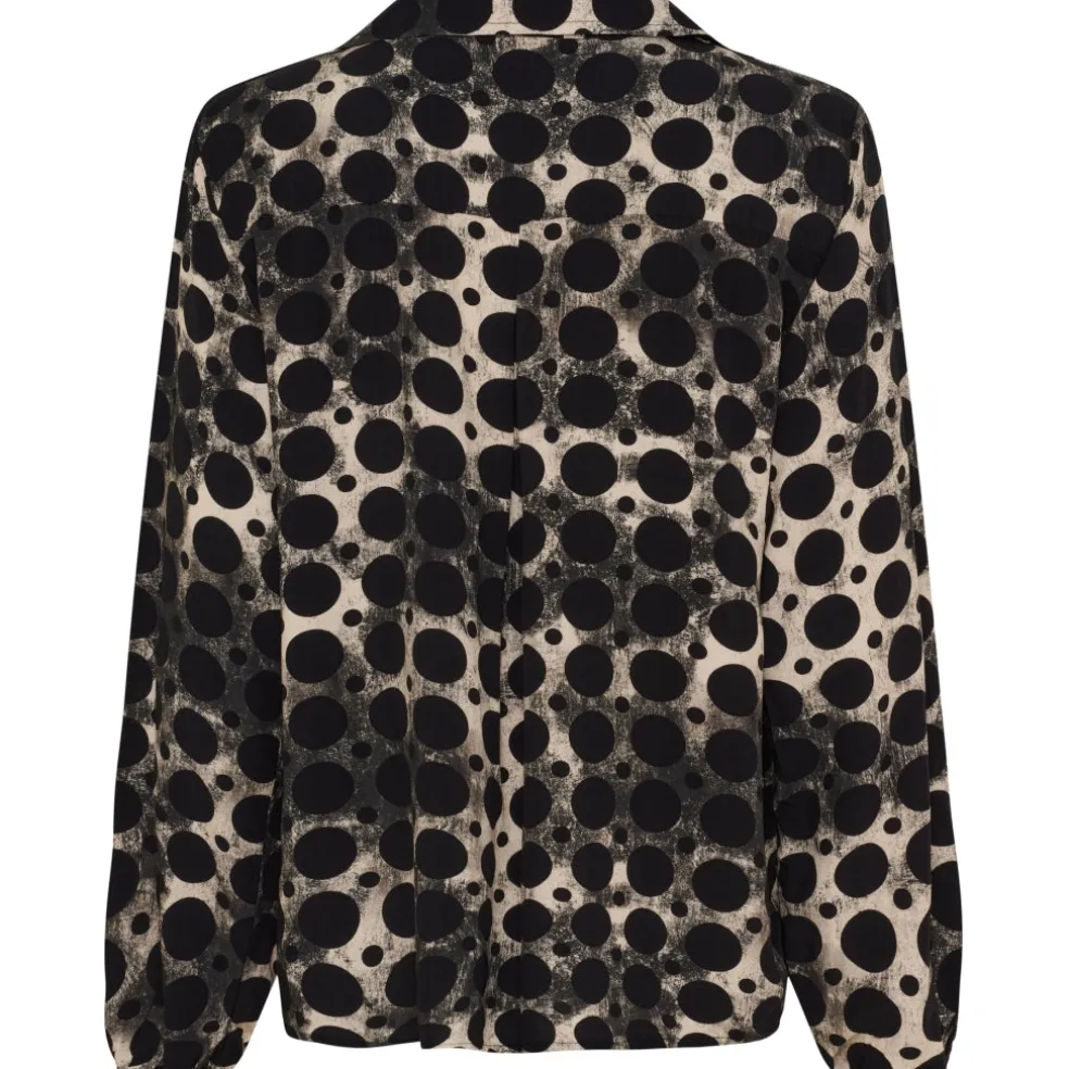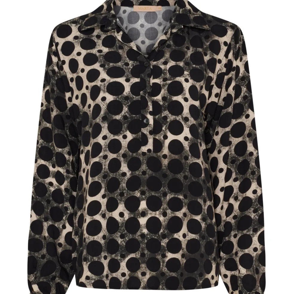 Bluse med smukt mønster fra Marta du Château. Blusen har v-hals, er gennemknappet og er perfekt til både hverdagbrug og finere brug.