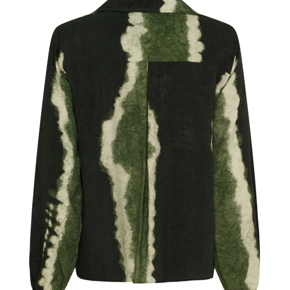 Bluse med smukt mønster fra Marta du Château. Blusen har v-hals, er gennemknappet og er perfekt til både hverdagbrug og finere brug.