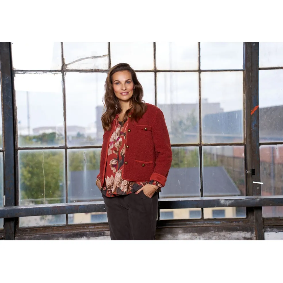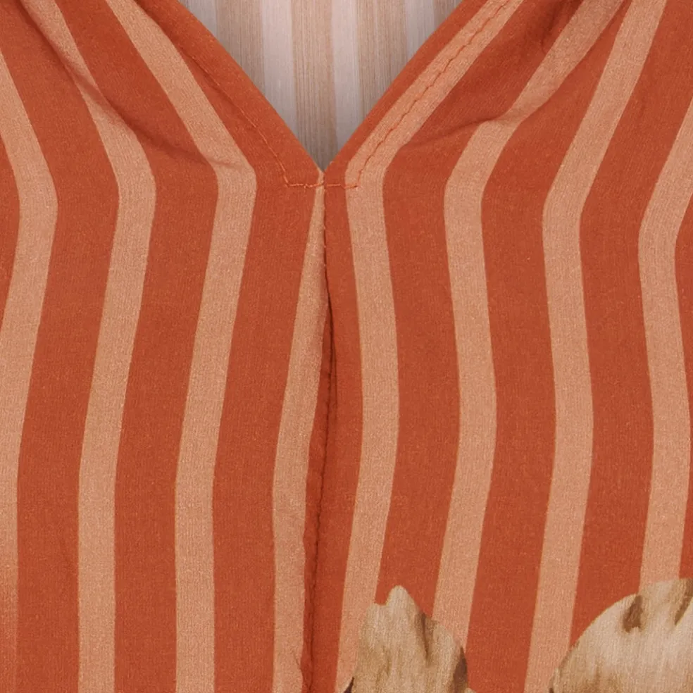 Sød bluse fra Marta du Château i et flot print. Blusen er V-halset med flæse detalje og lidt længere bagtil end foran. Den kan styles med både jeans og sneakers for et hverdags outfit, eller en nederdel og ballerina til finere brug.
