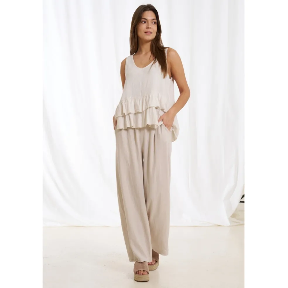 Lækre hør bukser fra Marta Du Cháteau med lommer og elastik i taljen.