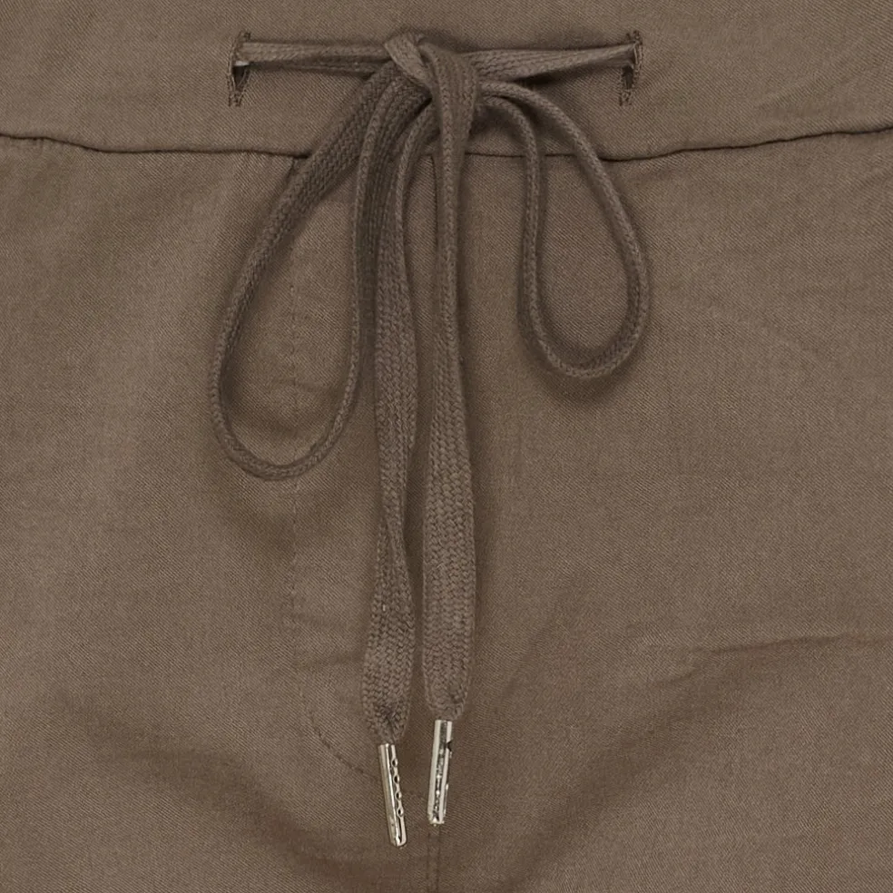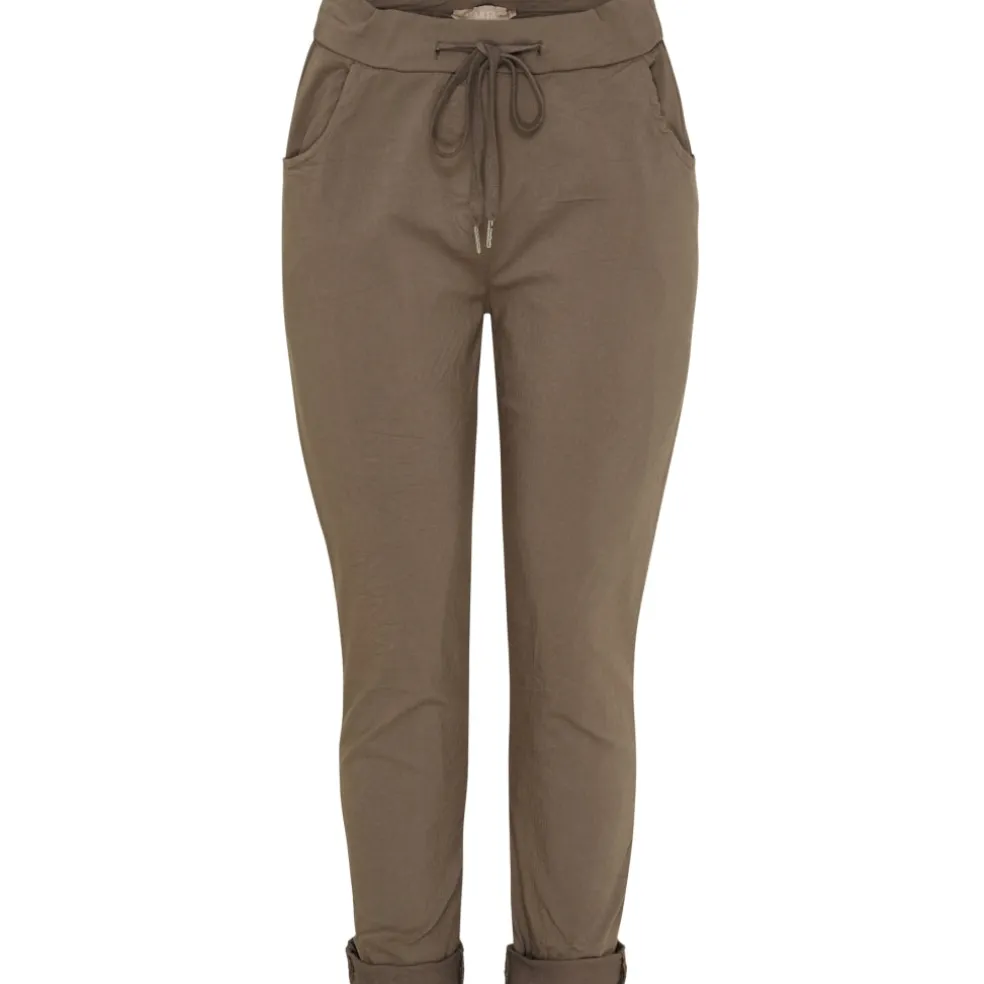 Dejlige og behaglige hverdagsbukser fra Marta du Château med elastik i taljen. Bukserne har opsmøg, snørrer og lommer, og kan både bruges til en skjorte, blazer eller bluse.