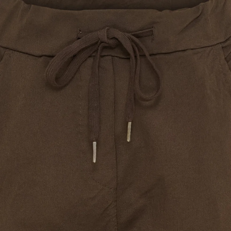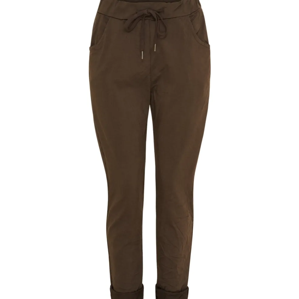 Dejlige og behaglige hverdagsbukser fra Marta du Château med elastik i taljen. Bukserne har opsmøg, snørrer og lommer, og kan både bruges til en skjorte, blazer eller bluse.