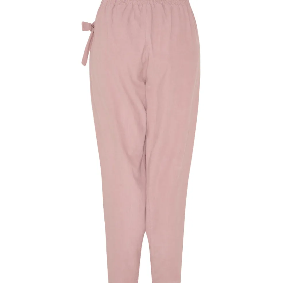 Smarte bukser fra Marta Du Château i baby fløjl. Bukserne har elastik i taljen – samt en sløjfedetalje i siden. De er super alsidige, og kan både styles med skjorter og bluser.
