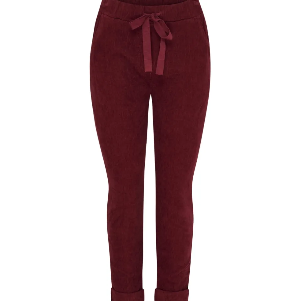 Dejlige og behaglige hverdagsbukser fra Marta du Château med elastik i taljen. Bukserne har opsmøg, snørrer og lommer, og kan både bruges til en skjorte, blazer eller bluse.