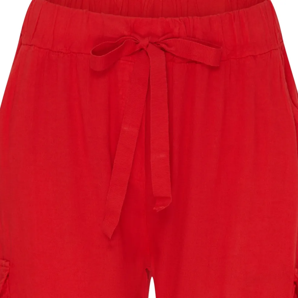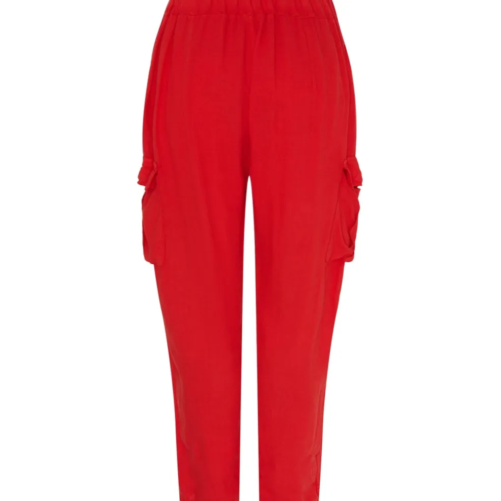 Skønne cargobukser i hørblanding med bindebånd i taljen.