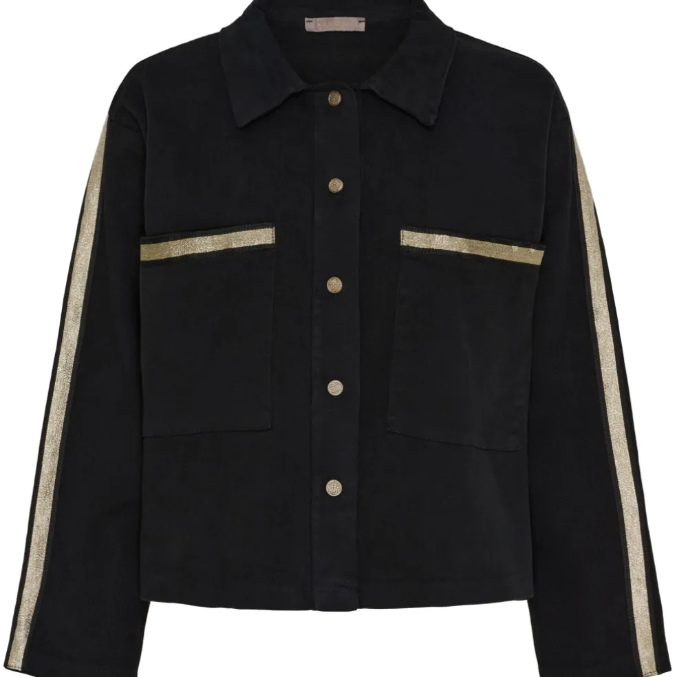 Sej jakke med fede detaljer såsom kontrastfarvede brystlommer og striber langs begge ærmer.