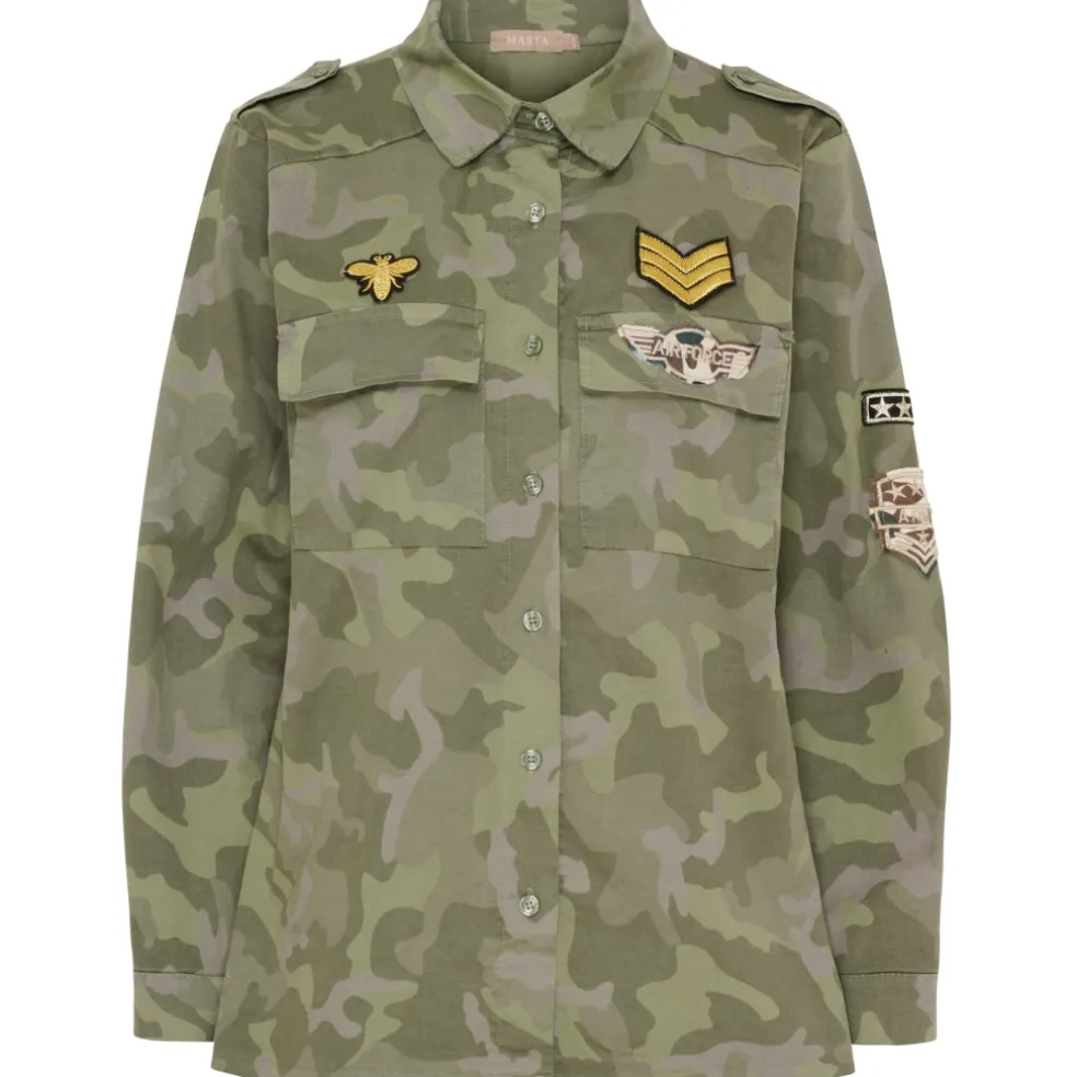 Cool jakke med små patch rundt på jakken.