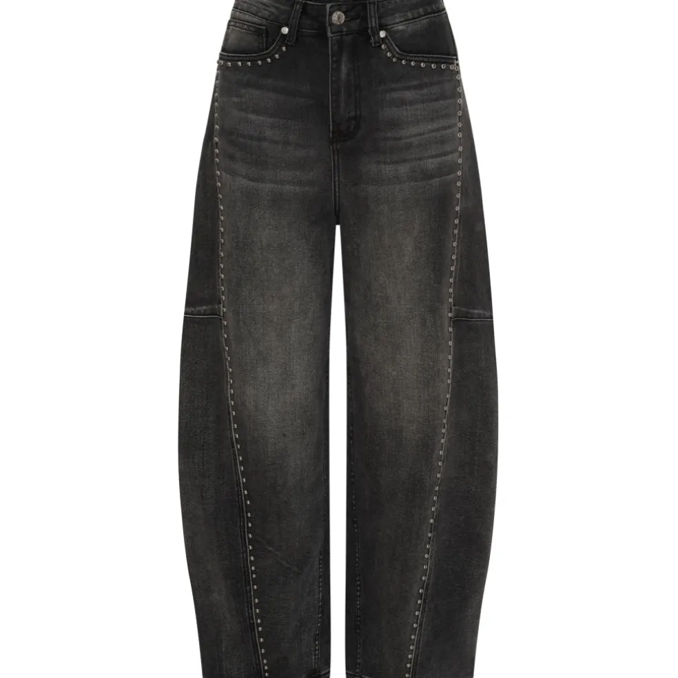 Cool baggy jeans fra Marta du Château med nitte-detaljer. Bukserne har knap- og lynlåslukning, samt lommer foran og bag. De kan bruges til ethvert outfit – både med en top og blazer, en strik eller skjorten, som matcher til.