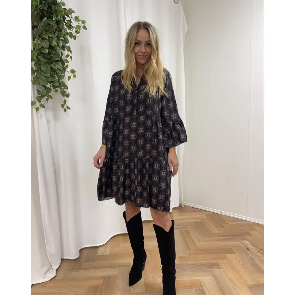 Super flot Marta kjole med brede ærmer. Kan styles sammen med et par støvler. ‘