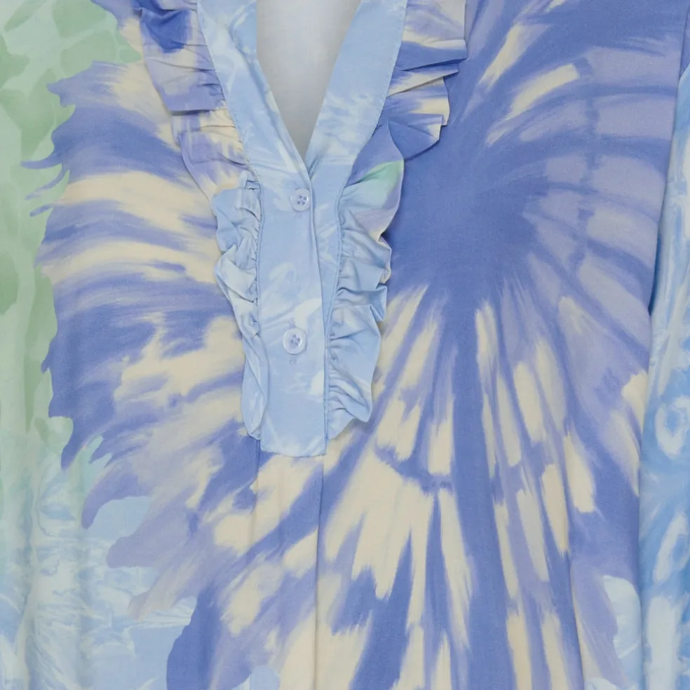 Flot kjole/tunika fra Marta med v-hals samt flæse ved ærmet. Perfekt at style med et par jeans samt støvler.