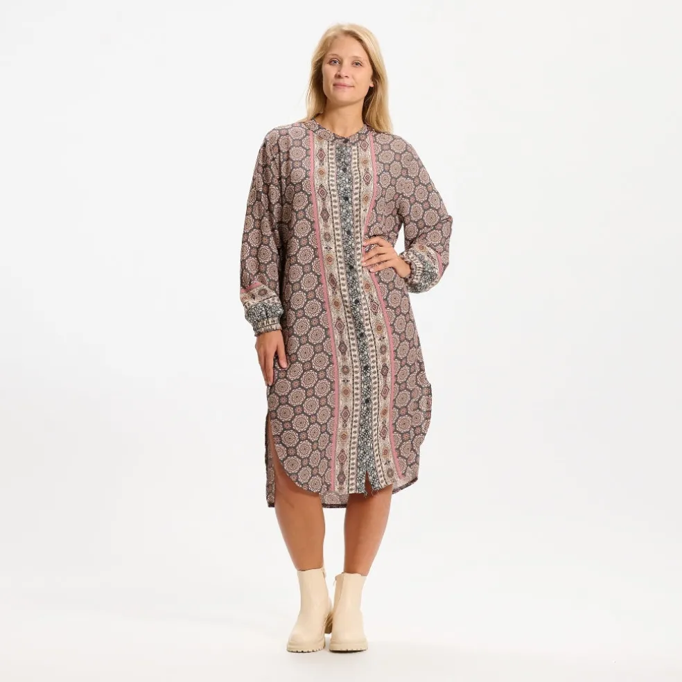 Smuk printet kjole fra Marta Du Cháteau. Kjolen er gennemknappet og har elastik i ærmet. Perfekt både at styles med strømpebukser eller et par jeans.