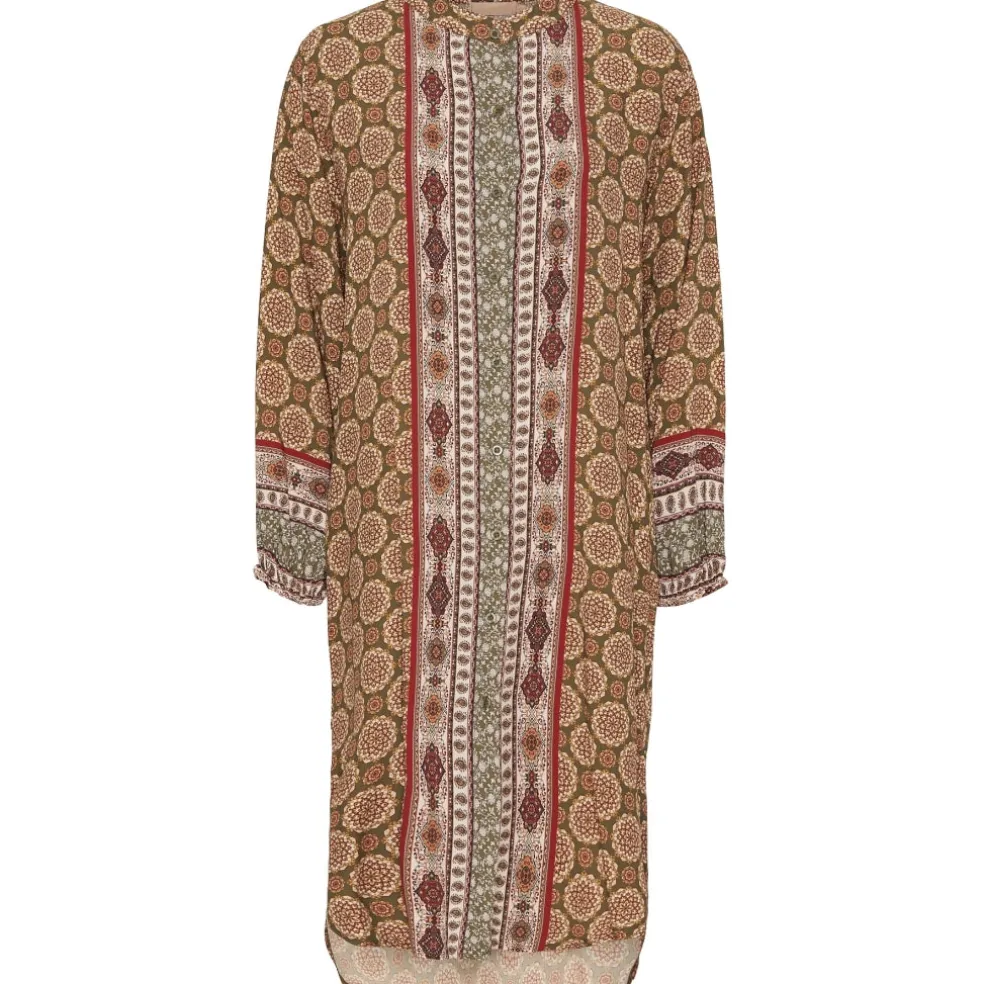 Smuk printet kjole fra Marta Du Cháteau. Kjolen er gennemknappet og har elastik i ærmet. Perfekt både at styles med strømpebukser eller et par jeans.