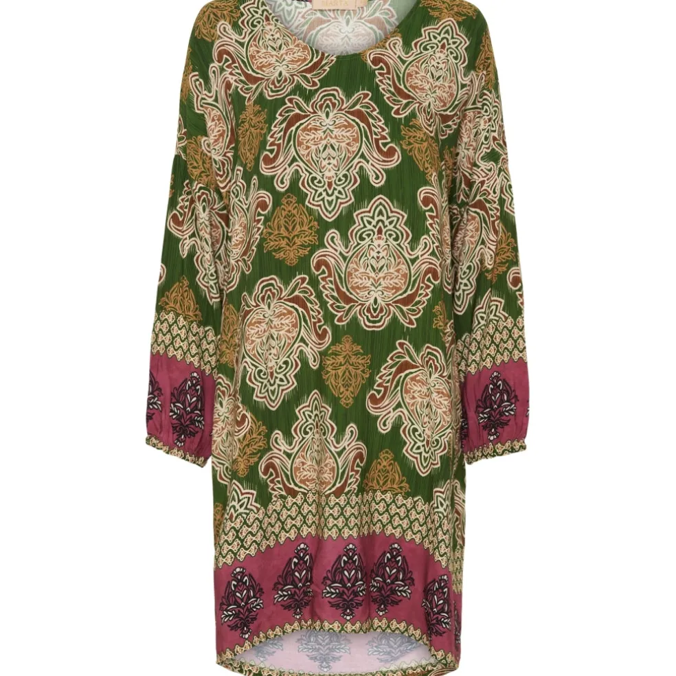 Smuk printet kjole fra Marta Du Cháteau. Kjole har en dejlig rummelig pasform og har elastik i ærmerne.