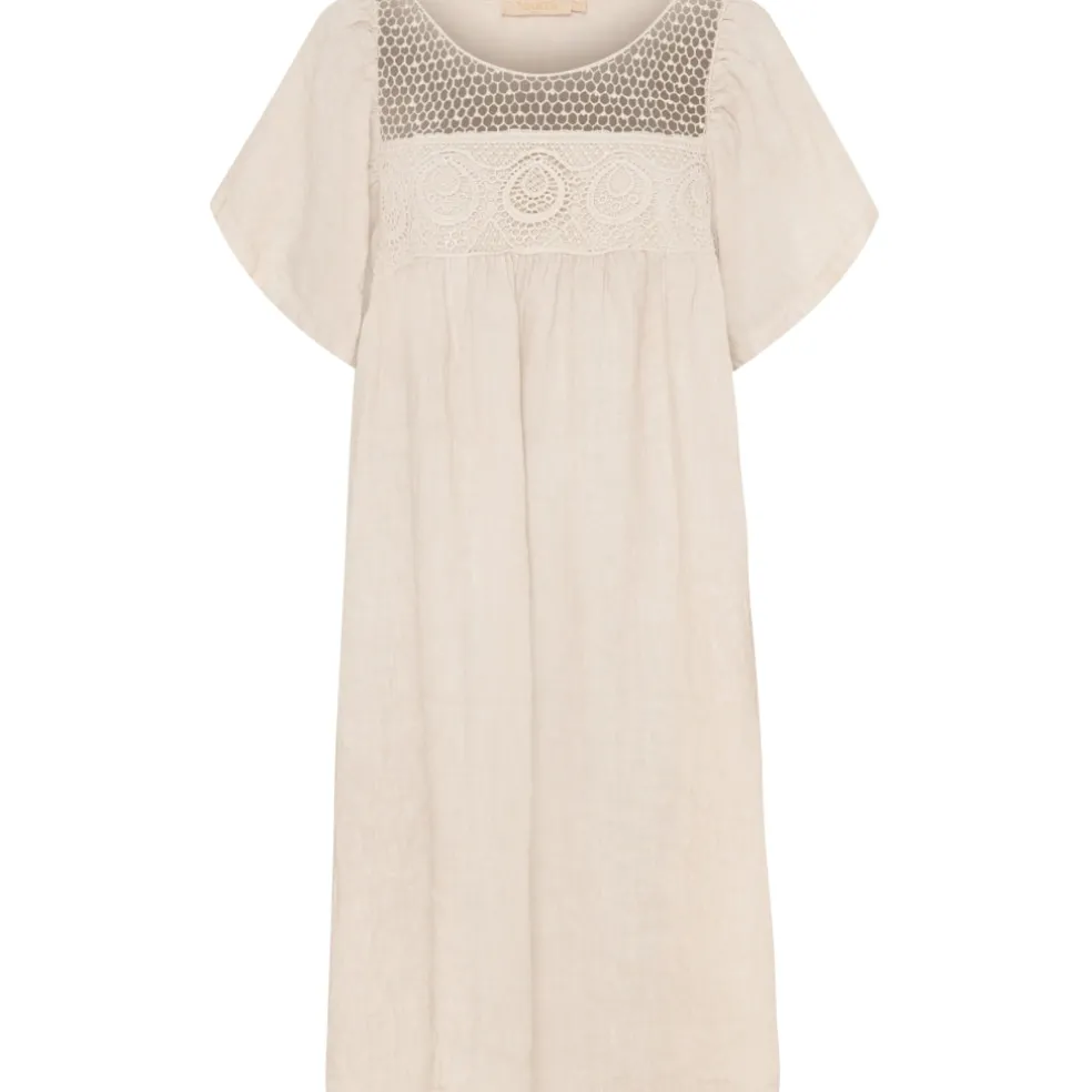 Smuk ensfarvet kjole fra Marta Du Cháteau med smukke blondedetaljer ved brystet.