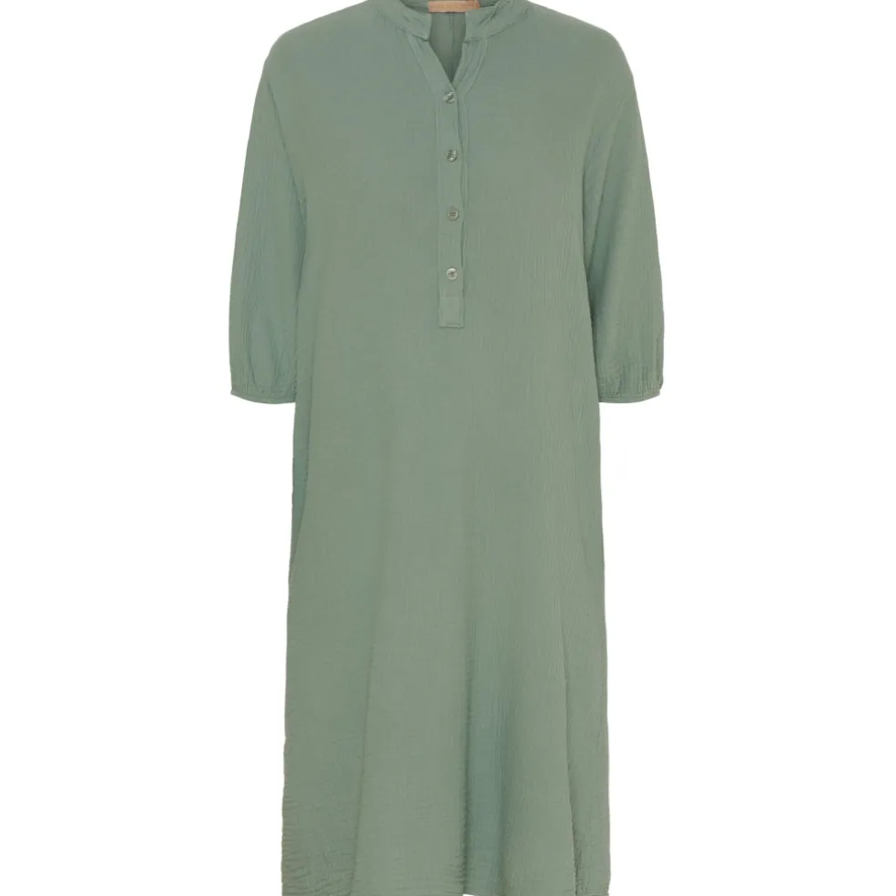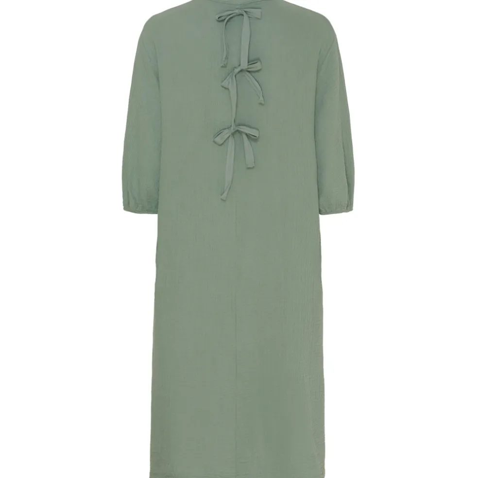 Smuk kjole med knapper samt sløjfer på ryggen.