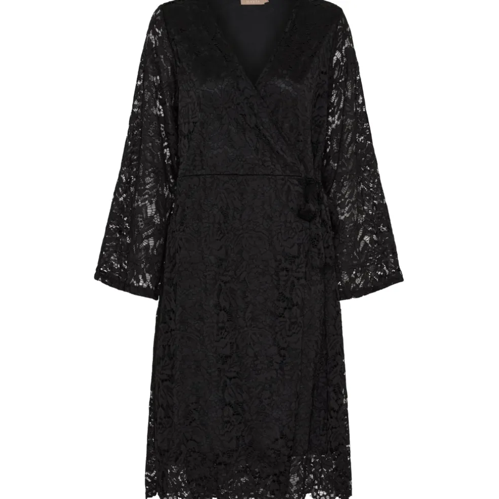 Flotteste blonde kjole fra Marta du Château med slå-om detalje. Kjolen har lange ærmer og justerbare bindebånd. Den kan styles med et par strømpebukser og stilet for et mere festlig look – eller en støvle for et mere afslappet look.