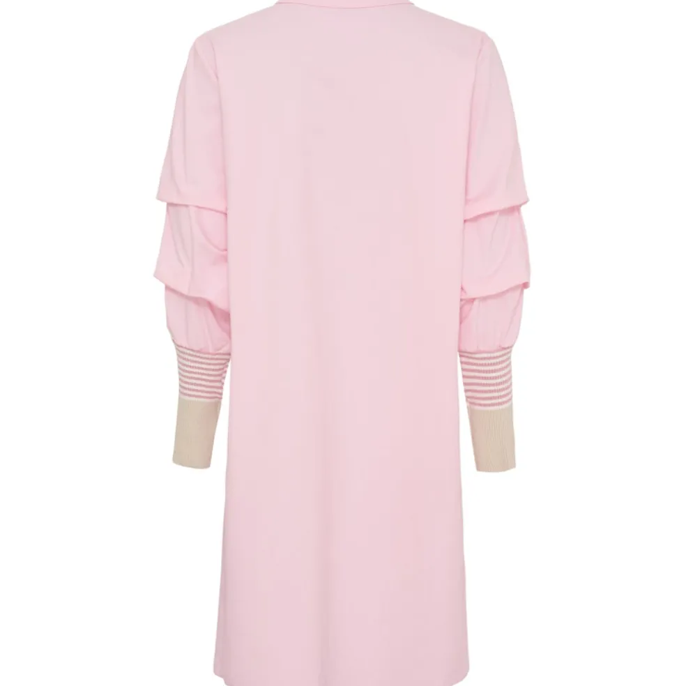 Fin kjole med enkle knapper og lange ærmer med kontrastmanchetter i striber. Kjolen har en høj, feminin krave og kan både bruges til sneakers og støvler. Brug den for sig selv eller tilføj tights eller leggings.