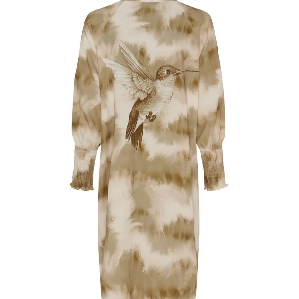Kjole/tunika fra Marta Du Château med smock i ærmerne. Kjolen har et fint feminint print og kan både bruges til hverdag og finere brug. Til hverdag, style den med tights og sneakers. Til finere brug, style den med støvler eller slingback stiletter.