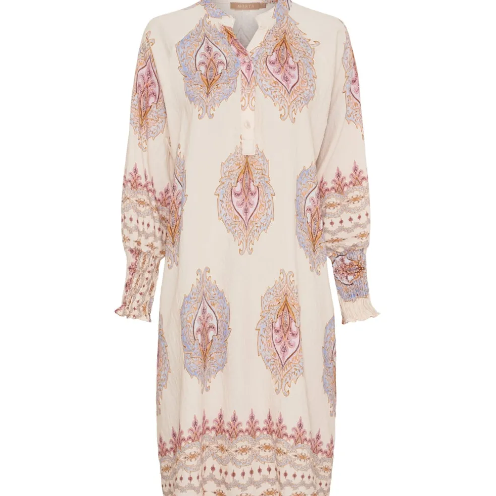 Kjole/tunika fra Marta Du Château med smock i ærmerne. Kjolen har et fint feminint print og kan både bruges til hverdag og finere brug. Til hverdag, style den med tights og sneakers. Til finere brug, style den med støvler eller slingback stiletter.