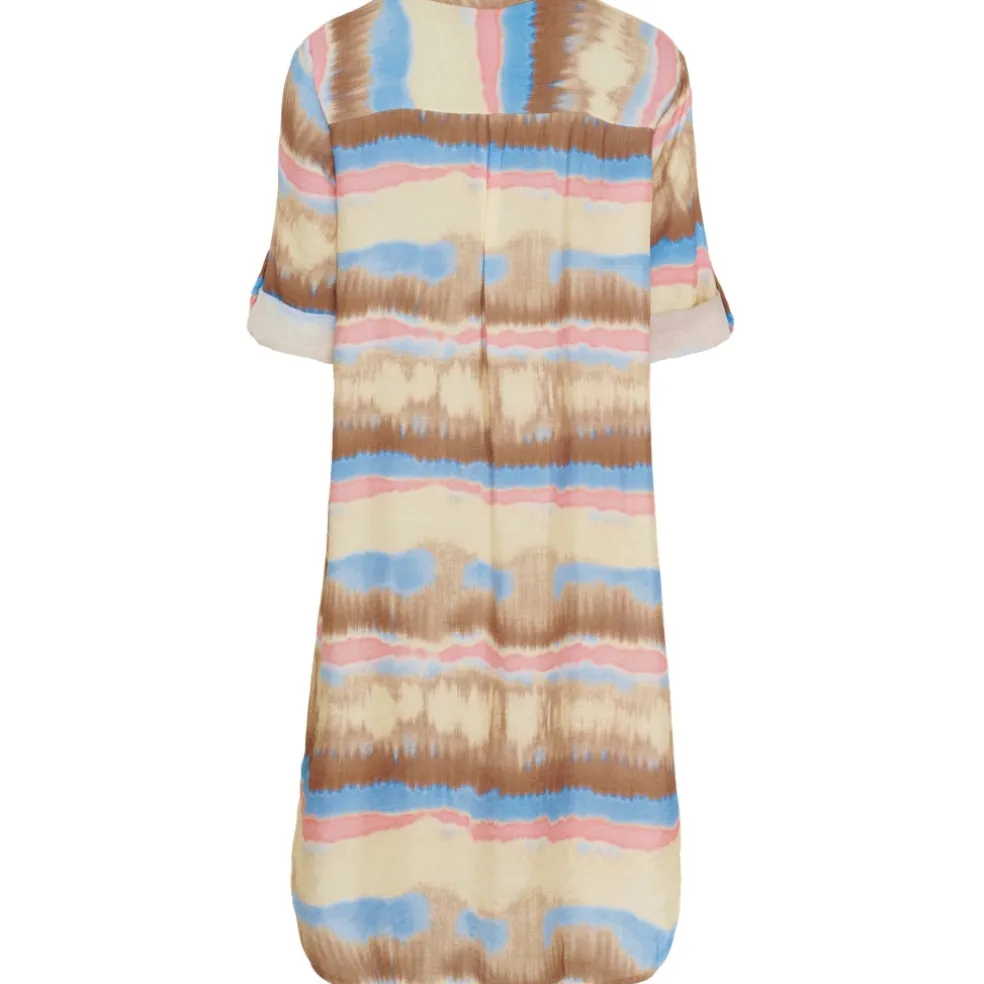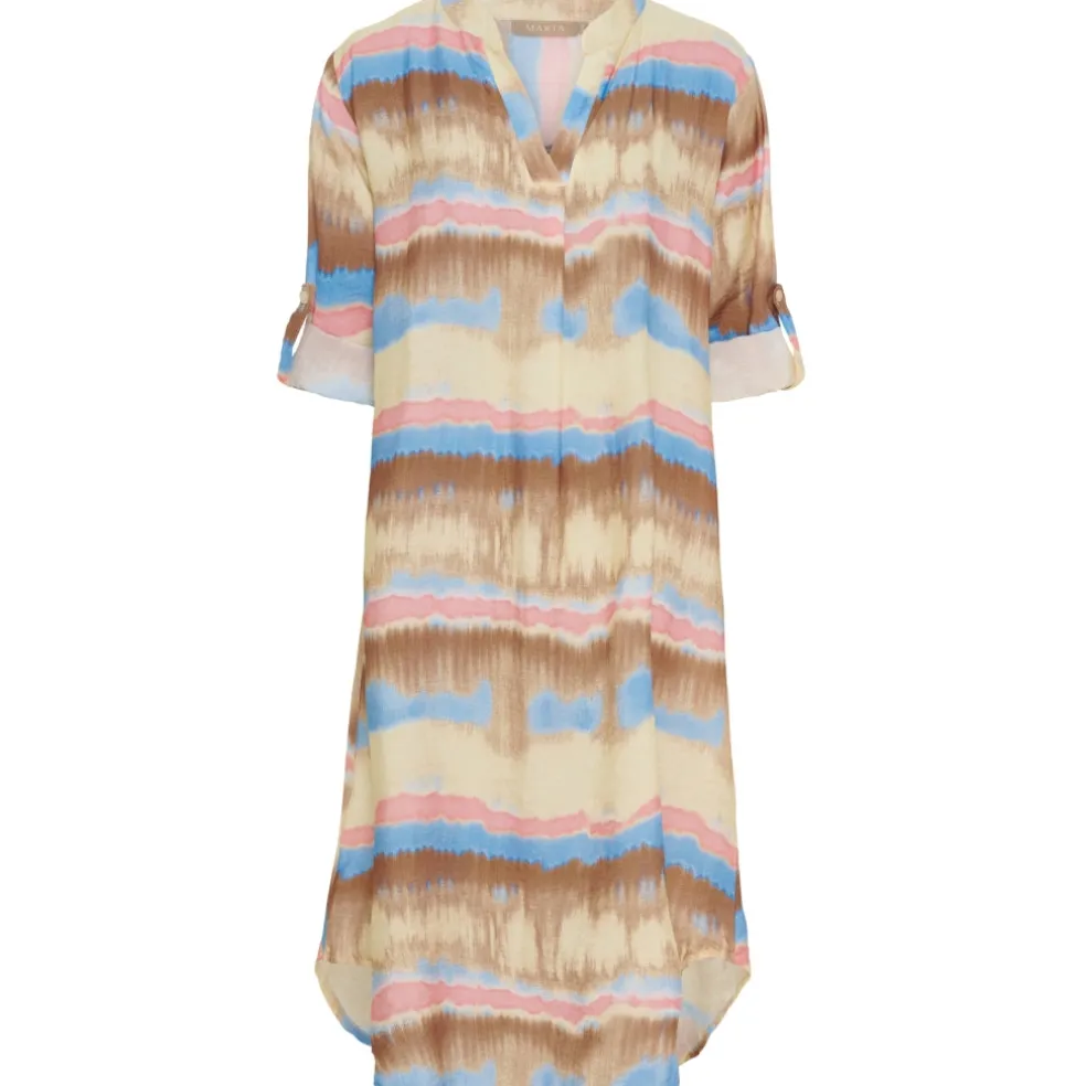 Smuk kjole med unikt print fra Marta Du Château. Kjolen har v-udskæring og opsmøg på ærmerne, og kan bruges for sig selv eller med tights under. Tilføj sneakers til hverdag og stiletter til finere brug.