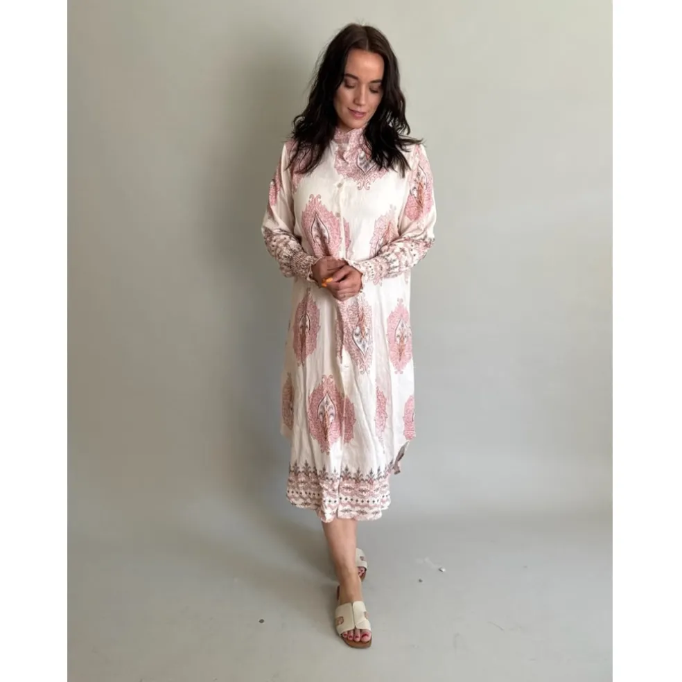 Smuk printet gennemknappet kjole fra Marta Du Château. Kjolen har smock ved ærmerne og er super feminin og elegant.