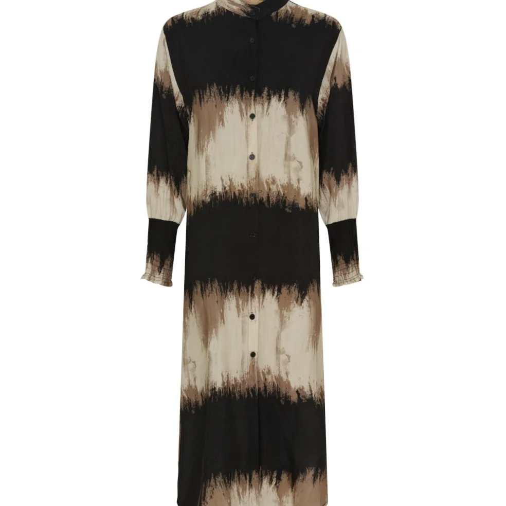 Smuk printet gennemknappet kjole fra Marta Du Château. Kjolen har smock ved ærmerne og er super feminin og elegant.