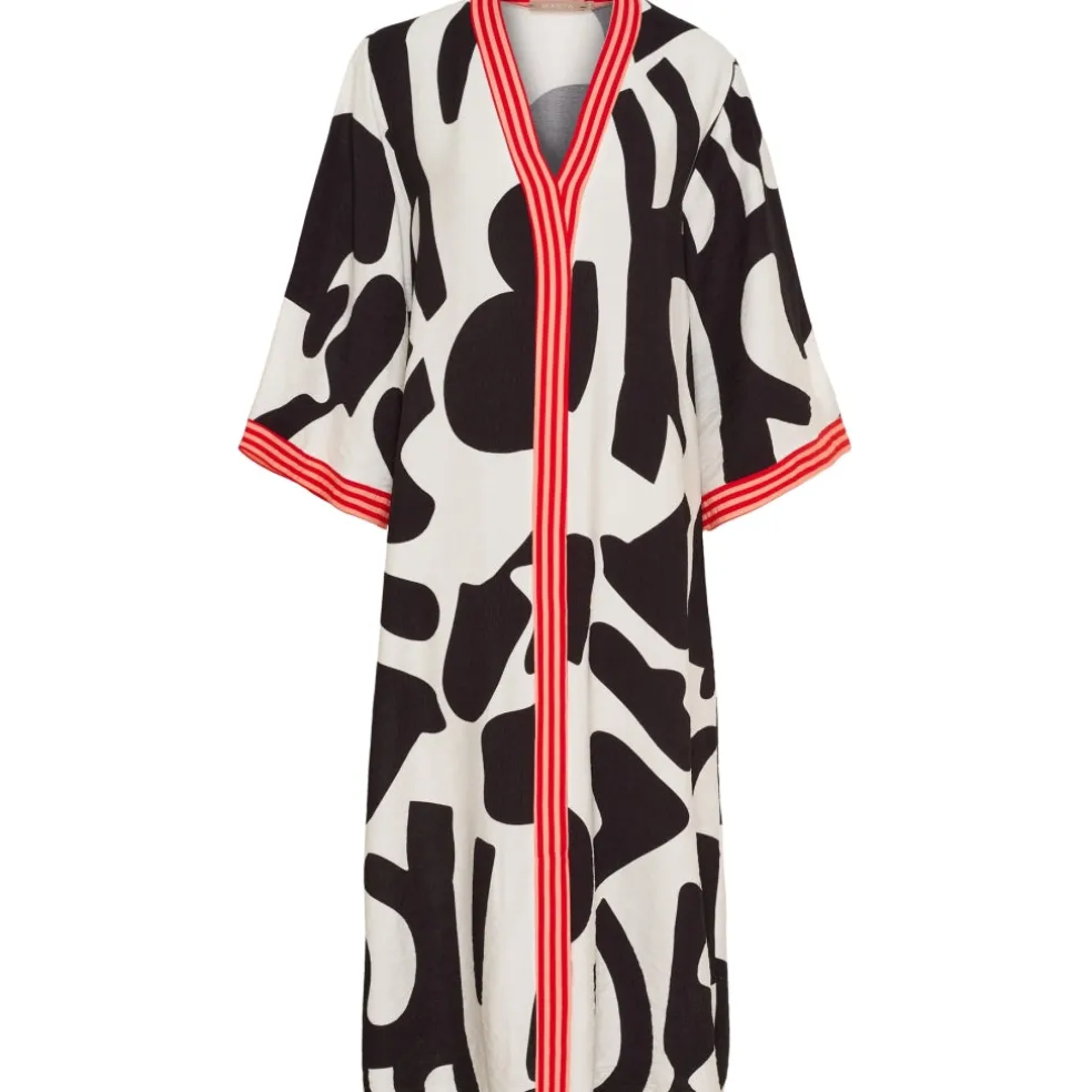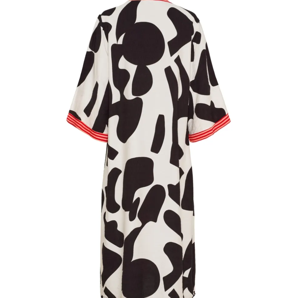 Smuk kjole fra Marta Du Chateau i et cool print. Kjolen har V-udskæring og 3/4 ærmer. Den kan bruges til hverdag med et par sneakers eller støvler, men også til finere brug med en ballerina eller stilet.