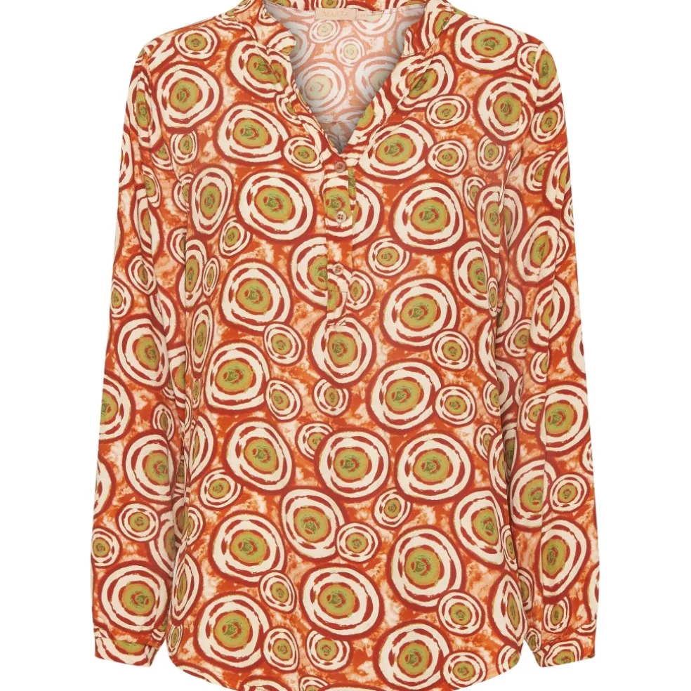 Marta du Chateau tunika i blød og behagelig kvalitet. Blusen er med v udskæring og har knapper foran.