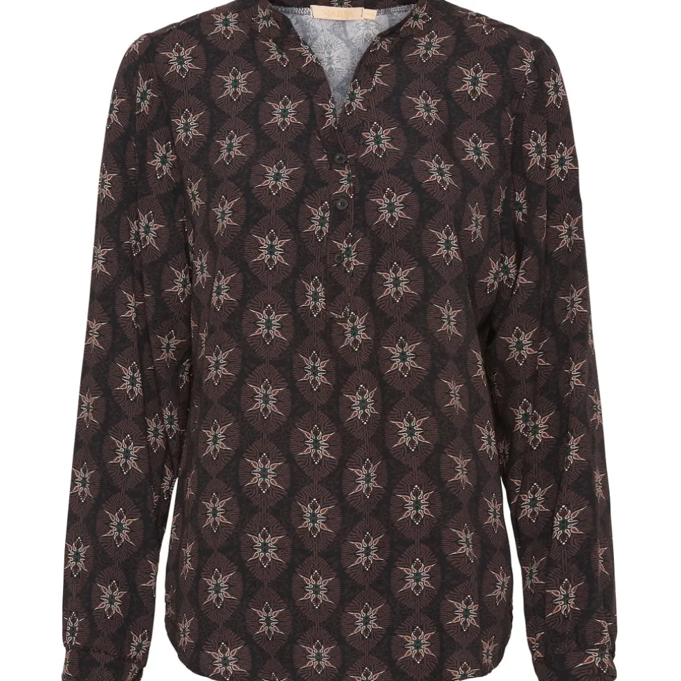 Marta du Chateau tunika i blød og behagelig kvalitet. Blusen er med v udskæring og har knapper foran.